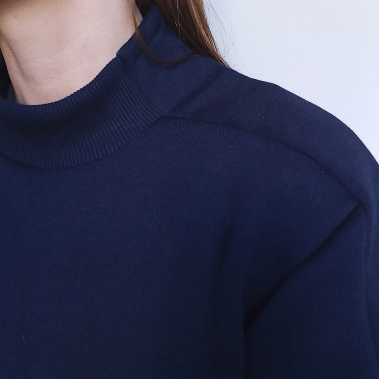 Blusa ampla de moletom com recorte lateral da gola até o punho.